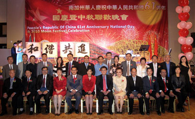 中新網9月19日電 據中國外交部網站消息,9月16日,中國駐洛杉磯副總領事卞立新出席南加州各界華人慶祝中華人民共和國成立61周年暨中秋聯歡晚會并發表講話。美國國會議員趙美心、加州主計長江俊輝、加州眾議員伍國慶、部分華裔民選官員以及各界人士共600余人參加。