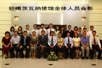 中新網11月4日電 據中國外交部網站消息,10月30日,中國駐博茨瓦納大使劉煥興在官邸舉行招待會,歡迎政務參贊茍皓東來博履新。駐博中資機構負責人、華人華僑代表和援博技術專家等80余人出席了招待會。