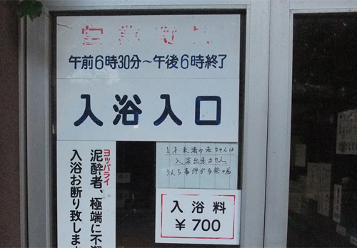 有一回路過京都一處公共浴池,看到一張雷人的小紙條,并同“拒絕醉漢入內”一起貼出來。上面寫的是“謝絕不滿1周歲的未成年幼兒入浴,因為發現他們在里面老拉巴巴!”