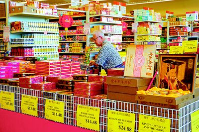 圣蓋博谷華人聚居城市華資超市,月餅上周開始上市,本地不少糕餅廠家也從本周開始推出月餅專柜。華資月餅進口商表示,外州訂單,已從本周開始發貨,預計下周起全面上架。