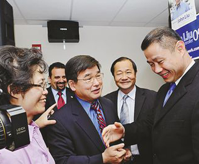 中新網(wǎng)11月6日電 據(jù)美國《世界日?qǐng)?bào)》報(bào)道,忙于謝票的紐約第20選區(qū)現(xiàn)任市議員、候任市主計(jì)長(zhǎng)華裔劉醇逸和候任華裔市議員顧雅明4日早上在華策會(huì)福壽老人中心喜相逢,兩人熱情擁抱,互相祝賀創(chuàng)造歷史,并表示兩人將馬上開始著手交接工作,使法拉盛民眾的服務(wù)不因?yàn)槭凶h員的更替而中斷。