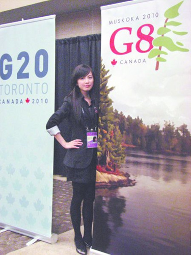 來自溫哥華的華裔女生蔡彬悅是加拿大代表隊中唯一一名華人。她在2000年3月跟隨父母從北京移居溫哥華,現已從Sir Wiston Churchill中學畢業,將在今秋進入多倫多大學攻讀社會科學專業。蔡彬悅告訴記者,她是“環球視野”組織在加拿大的青年大使,她參加這次“2010我的峰會”,最為關注的議題就是如何改善窮困國家的母嬰健康。她說:“因為她們是弱勢群體,應該得到保護!
