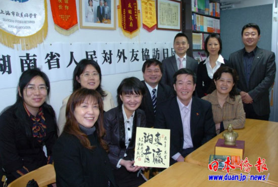 龐力平副會長還說,現在從長沙到廣州只要兩個半小時,湖南的鐵路公路空中交通發生了翻天覆地的變化,在日本留學或工作多年的湖南游子紛紛發出了驚嘆的聲音。龐力平副會長最后介紹了湖南省與日本的友好交流情況,他說現在湖南與日本的友好城市正好是十對,越來越多的日本朋友前往湖南,越來越多的湖南人希望訪問日本。陪同龐力平副會長訪問日本的湖南韶山管理局外僑辦副主任張素娥、湖南省人民政府外僑辦干部曾卓然等介紹了毛主席家鄉飲食文化的最新信息,受到大家的好評。