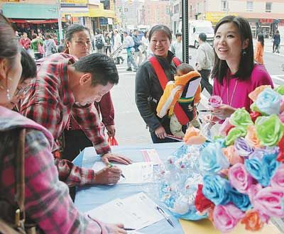 中新網11月12日電 據美國《世界日報》報道,美國退伍軍人節在華人小區有一個另類的稱謂,11月11日因連續含有四個“1”,所以被稱為“單身節”或“光棍節”(One's Day)。華策會小區拓展計劃在單身節前夕,10日在紐約曼哈坦華埠街頭向單身閩籍新移民發放了2000朵紙疊玫瑰花,祝福新移民青年在異鄉早結良緣,脫離光棍一族。