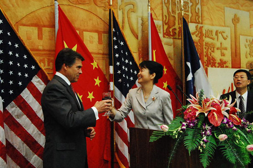 高燕平總領(lǐng)事在招待會(huì)上分別用中文和英語致辭,對佩里州長以及來自德州各界的美國朋友及華裔同胞表示熱烈的歡迎。這次世博會(huì)德克薩斯州將通過世博園里的美國館,向全中國和全世界展現(xiàn)自己。高燕平表示希望通過佩里州長6月份的訪華,進(jìn)一步推動(dòng)中國與德州在各領(lǐng)域的交流與合作,希望佩里州長的訪問順利成功并富有成果。