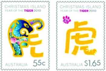 中新網1月13日電 據澳洲《星島日報》報道,為紀念2010農歷新年虎年的來臨,澳洲郵局特別推出一套由墨爾本設計師潘德妮設計的別致虎年郵票。