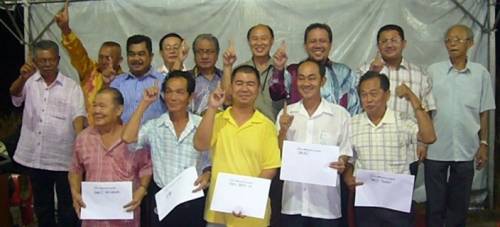 庇勞馬華區(qū)會主席蔡華輝代表房屋部移交批準文件予各村長。