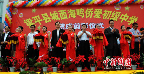 中新網梁平6月21日電 (記者 郭晉嘉)21日,重慶市梁平縣城西海鳴僑愛中學(原梁平城西中學)竣工落成,國僑辦副主任馬儒沛、僑愛中學捐資人屠海鳴等出席落成剪彩儀式。