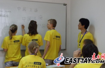 7月30日上午,“漢語橋——俄羅斯中學生夏令營”開營儀式在上海財經大學舉行。短暫的開營儀式結束后,夏令營中的俄羅斯學生就開始了他們的漢語課的學習,俄羅斯中學生們對漢語的學習表現出了極高的熱情。第一次的漢語課上,除了書上的課程,漢語2班的同學們還額外學會了書寫“中國上海”這四個漢字。