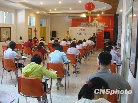 7月25日,泰國孔敬大學孔子學院舉辦今年的第一次HSK基礎級和初中等級兩個級別的漢語水平考試。據該孔子學院院長黃曉明介紹,這些年,隨著孔敬大學孔子學院漢語教學和中國文化活動的進一步開展,當地學習漢語的人數激增,參加HSK考試的人數也在逐次增加,考試的級別也在提高。原來孔敬大學孔子學院只開設HSK基礎級考試,應考生的要求,現在已經開設基礎級和初中等級,而且這次參加初中等級考試的考生數量也比參加基礎級的考生數量多。(中新社/顧時宏 攝)