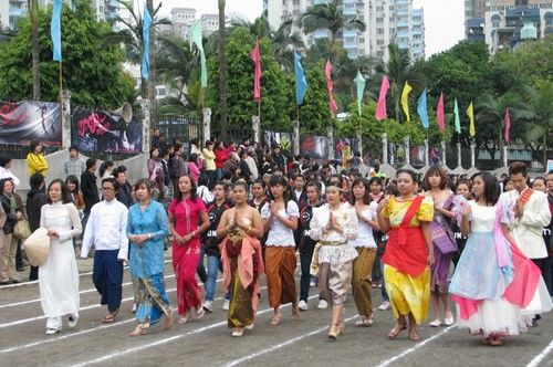 早上八點,早就整裝待發(fā)的運動員、裁判員列隊進(jìn)場,五洲學(xué)子整齊劃一地通過主席臺,并表演了精彩的節(jié)目,展現(xiàn)出昂揚的精神面貌,充分體現(xiàn)了華文學(xué)院國際化辦學(xué)特色。華文學(xué)院黨委書記曾文明在開幕式上講話:要求同學(xué)們加強鍛煉,提高體質(zhì),,并通過運動會這樣的形式,賽出風(fēng)格、賽出水平,加深友誼,爭取取得更好的成績。