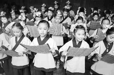 近日,蒙學讀物《弟子規》走進了北京市不少小學課堂。這只是國學熱的一場小景。穿漢服、行古禮、背儒經,越來越多的形式渴望上演一場逼真的國學普及盛況。此外,“天價國學班”光明正大地開班了,一些名校也開始成立或恢復設置國學研究院。