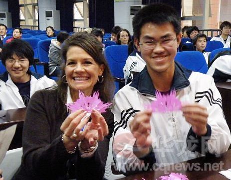 “中國最早的文字起源是什么?中國最早的文字為什么稱為甲骨文?”12月7日下午,2009“漢語橋——美國中小學校長訪華之旅:邁出新步”代表團到位于渝北區(qū)的重慶市暨華中學校參觀訪問。9名美國中小學校長在與師生共同上課的過程中,深刻感受到了漢語的無窮魅力。
