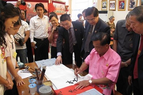 羅勇府府尹沙榮蓬∙林泰、泰國教育部民教委秘書長代表甘恒君、泰國教育部民教委漢語項目主任賴芝華 、羅勇府第一區教育局長通猜·滿空、泰國東部華文民校聯誼會理事會榮譽顧問梁冰、主席張步青、明滿學校校長陳松等嘉賓共同出席了當天的剪彩儀式,并參觀了孔子課堂的圖書展覽和各個文化項目。