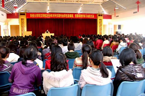 中新網(wǎng)3月12日電 據(jù)華僑大學(xué)網(wǎng)站消息,3月11日下午,華僑大學(xué)華文學(xué)院召開(kāi)2010年對(duì)外漢語(yǔ)專業(yè)學(xué)生赴泰國(guó)、菲律賓教學(xué)實(shí)習(xí)動(dòng)員大會(huì)。院長(zhǎng)孫汝建、黨總支書記兼副院長(zhǎng)趙明光與學(xué)院辦公室、教學(xué)辦、培訓(xùn)部、招生辦、學(xué)生辦等部門領(lǐng)導(dǎo),以及教學(xué)實(shí)習(xí)的帶隊(duì)老師和07、08、09級(jí)對(duì)外漢語(yǔ)專業(yè)的353名同學(xué)參加大會(huì)。