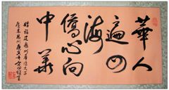 著名書法藝術家方向雄日前為華僑大學五十周年校慶題詞:“華人遍四海 僑心向中華”