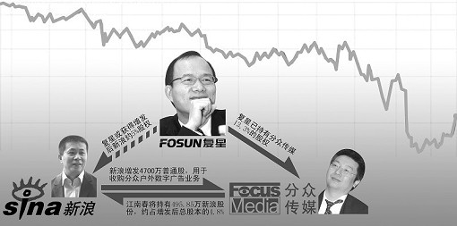 對此互聯網專家呂伯望稱,“復星國際對分眾傳媒股權的收購,對新浪收購分眾傳媒沒有什么影響。除非新浪愿意江南春或是復星進入董事會。”