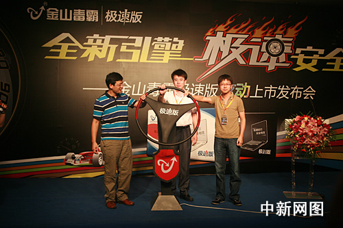 中新網8月5日電 8月4日,國內知名的信息網絡安全廠商金山軟件在北京京港國際賽道上演了一場“極速體驗秀”,金山毒霸極速版攜手賽車高手閃亮登場。僅7M的超小體積、15M的超小內存占用,金山毒霸極速版成功解決了筆記本、上網本用戶因配置低等因素導致的殺毒軟件卡機、查毒速度慢等問題,成為國內首款筆記本、上網本專用殺毒軟件。