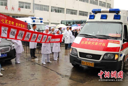 中新網蘭州4月21日電 (記者 張玉璽)4月21日,根據衛生部安排,由蘭州大學第一醫院19名專業人員組建的甘肅省第4支赴青海玉樹災區醫療救援隊自蘭州出發。這支醫療救援隊將接替甘肅省中醫院醫療隊,承擔甘肅省醫療對口支援的玉樹縣哈秀鄉醫療服務工作。
