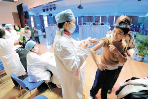 為了不影響期末考試,各區縣將于1月中旬前完成接種。上午8時30分,長寧區省吾中學16個班級的學生分班來到禮堂接種。校長陳依群介紹,接種季節性流感疫苗和接種甲流疫苗一樣,都先發登記表由家長學生自愿選擇。全校500多學生中約七成同意接種。