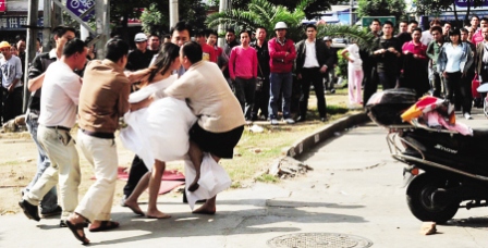 一女子赤裸著身子坐在電動車上,嘴里念叨著有人要掐死她,民警到場,她還不肯穿上衣服,抓了磚頭就要砸幫她穿衣的人。昨日中午12時許,在福州三八路與塔頭街交叉路口發生了一場裸女風波。