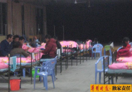 丁三走進一條窄窄的胡同。村支書家現已成了塘里村救助點。人來人往中,丁三走進一樓的堂屋,見五六名縣醫院派來的醫生靠著一張桌子說話,他拍打著桌子喊道:“為什么我家人中毒越來越嚴重?!”他要求馬上將自己母親和外甥送到縣里治療,沒得到明確答復。他轉身來到臨路的一間房內,幾個板橋鄉領導坐在那里守著,告訴丁三得找縣中醫院的吳主任批條子。