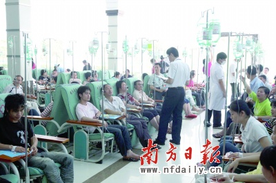 昨天上午11時(shí)許,記者趕到樟木頭醫(yī)院時(shí),該院的輸液大廳坐滿了光明毛織廠員工,他們正在打點(diǎn)滴。樟木頭鎮(zhèn)政府的幾位領(lǐng)導(dǎo)正在現(xiàn)場(chǎng)問(wèn)寒問(wèn)暖。據(jù)記者觀察,該輸液大廳的8排輸液椅子都坐滿病號(hào),共100多人,其中少數(shù)人不是光明毛織廠的員工。