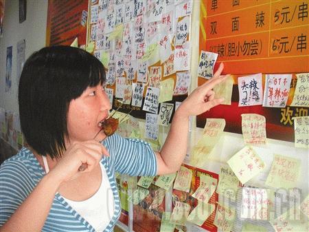 變態烤翅店內留言板上,密密麻麻地貼滿了顧客留言