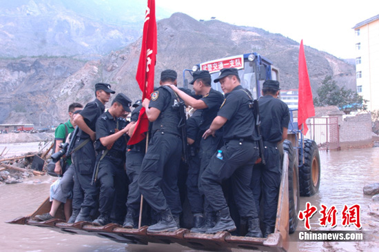 8月8日下午15時,成都公安特警集結150人的隊伍從成綿高速成都入口處出發,以摩托化開進的方式,途經成綿高速、綿廣高速出廣元昭化出口,上122國道經青川、甘肅文縣、隴南市,經過800公里連續18個小時的不間斷長途跋涉,首批隊伍共計80人于9日上午8時15分到達災區舟曲縣城。第二批隊伍于9日15時許到達舟曲。
