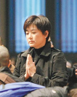 由香港飛回臺灣的林青霞下午趕到金山法鼓山,見了圣嚴法師遺容,行最敬頂禮三拜,走了幾步駐足停留,回頭再回頭看著師父。林青霞離開法鼓山前,提到八年前決定修行時,因緣際會與圣嚴法師坐禪三結緣,談及過去與師父點點滴滴,她眼中泛著淚光,流露出諸多不舍。