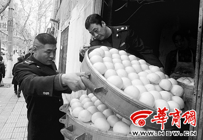 那位店主還告訴他饅頭變白有好幾種辦法,一種是給面粉里添加增白劑,有漂白粉、吊白塊等,一袋面粉中就加二三兩。最省錢(qián)的辦法就是在饅頭蒸好之后,在籠屜的下方,放入點(diǎn)燃的硫磺。“只要乒乓球大一塊,就能熏兩三千個(gè)饅頭!崩顜煾捣Q,好多饅頭有硫磺味兒,皮是白的,里面是黑的,就是用硫磺熏蒸的結(jié)果。