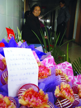 趙蕾的病房外擺滿了鮮花,人們等待著奇跡的發生