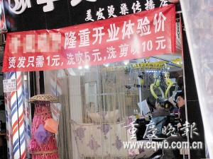 近日,渝北龍溪街道電子校附近一家新開的理發店打出廣告,到該店燙發只需1元。如此“好事”,是真的嗎?