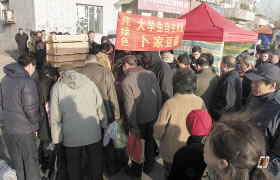 “孩子,你念回大學,咋還出來賣豆腐?”一位老人接過豆腐。