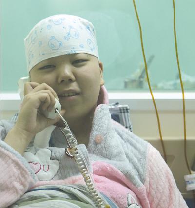 隔著病房的玻璃窗,記者通過電話與全薪宇進(jìn)行了交流。盡管知道生父不愿為自己捐骨髓,她在整個采訪中卻沒有一句怨言,一直綻放著樂觀的笑容。
