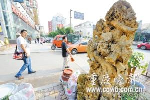3.6萬元!江北區望海花市四區南側的一座鐘乳石最近開出了天價,等待買家。