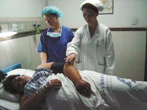 在醫院,比丈夫朱德全更緊張的是醫護人員。要扶李女士上下床,必須出動5個護士,用儀器檢查時需要她經常翻身,醫生護士經常累得大汗淋漓。張建華教授說,為李女士進行剖宮產手術的時候,她的助手達到6個人,比平時多了一倍。