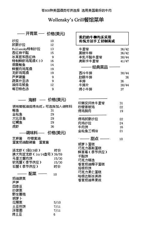 根據(jù)Smith&Wollensky牛排連鎖店網(wǎng)站的資料,這家餐廳每道菜在30~60美元之間,最貴的一款菜是14盎司的澳大利亞龍蝦,價值59美元。對于211萬美元的成交價格,Smith&Wollensky顯得很驚訝,他們稱“相對競拍的天價,這頓午餐花費只是個零頭。”