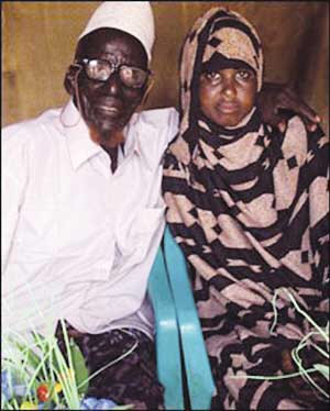 揚子晚報消息,據英國媒體30日報道,現年112歲的索馬里老漢阿赫邁德·穆哈邁德·多爾一生總計結過5次婚,并擁有總計114名子女和孫輩。但令人目瞪口呆的是,日前多爾又舉行了第6次婚禮,娶了比他小95歲的17歲少女薩菲婭·阿卜杜勒。盡管“新郎”多爾年齡大得足以做“新娘”薩菲婭的高祖父(爺爺的爺爺),但多爾竟然表示婚后將和新婚妻子薩菲婭生育更多兒女。