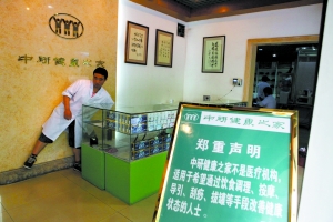 5月20日,中國中醫科學院東側,中研健康之家內掛著一個牌匾,上面寫著“中研健康之家不是醫療機構,適用于希望通過飲食調理、按摩、導引、刮痧、拔罐等手段改善健康狀態的人士!