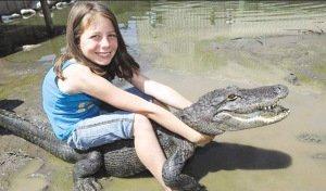 薩曼莎從小就在鱷魚群中長大,從6歲起,她就從自己的父親杰爾、母親艾琳那兒學會了如何和鱷魚摔跤、并將它們乖乖制服的藝術(shù)!薩曼莎接受記者采訪時說:“我從6歲開始就和鱷魚們摔跤了,我的父母教會了我如何將鱷魚制服的本領(lǐng)。我的父親在5歲時曾經(jīng)被鱷魚咬過一次,從那以后,他就學會了如何搏斗并制服兇猛的鱷魚。當我一開始和鱷魚摔跤時,我真有點兒害怕,不過我的父親一直在我身邊,他總是知道該如何對付它們。如果我面臨危險,他就會過來幫助我。”
