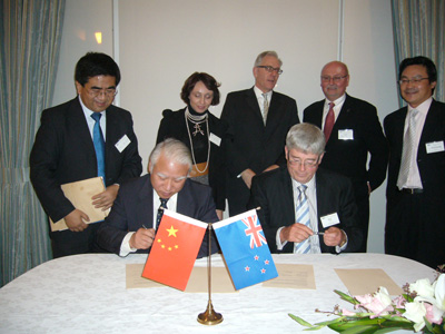 中新網11月20日電 據中國留學服務中心網站報道,近日,留學服務中心中心主任白章德在新西蘭駐華大使館與來訪的新西蘭惠靈頓維多利亞大學校長Pat Walsh教授共同簽署了《中國留學服務中心與惠靈頓維多利亞大學合作協議書》。新西蘭駐華大使伍開文先生(Mr. Carl Worker)見證了簽字儀式。