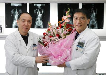 中新網(wǎng)1月21日電 據(jù)南京僑辦消息,1月11日上午,國(guó)家科學(xué)技術(shù)獎(jiǎng)勵(lì)大會(huì)在北京人民大會(huì)堂隆重舉行,中共中央總書(shū)記、國(guó)家主席胡錦濤以及全體政治局常委出席大會(huì)并為獲獎(jiǎng)的科學(xué)家們頒獎(jiǎng)。南京大學(xué)醫(yī)學(xué)院附屬鼓樓醫(yī)院邱勇教授等完成的《脊柱畸形的臨床治療和相關(guān)基礎(chǔ)研究》成果榮獲國(guó)家科學(xué)技術(shù)進(jìn)步二等獎(jiǎng),并參加大會(huì)接受國(guó)務(wù)院頒發(fā)的證書(shū)和獎(jiǎng)勵(lì)。這是江蘇省臨床醫(yī)學(xué)唯一獲獎(jiǎng)?wù)撸彩乔裼陆淌陬I(lǐng)導(dǎo)的團(tuán)隊(duì)第二次獲得國(guó)家科學(xué)技術(shù)進(jìn)步獎(jiǎng)。