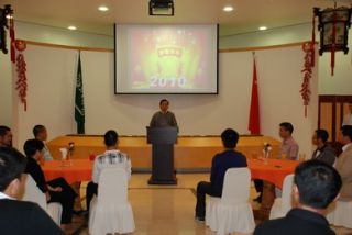楊大使向各位留學生并通過他們向在國內的親人致以誠摯的新春問候,介紹了國內發展和中沙雙邊關系有關情況。楊大使表示,近年來,中國經濟保持平穩快速增長,社會建設取得巨大成就,國際地位不斷提升。中國已成為世界第三大經濟體,2009年外匯儲備繼續保持世界第一,外貿出口躍居世界第一,高速公路總里程數居全球第二。繼2008年奧運會后,今年我們還將舉辦2010年上海世博會,將再次向世界展示一個發展、開放、繁榮的中國。祖國的發展讓身居海外的中華兒女感到更加自豪和驕傲。