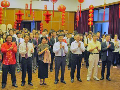 劉健大使發(fā)表講話,向廣大在馬中資企業(yè)員工和中國留學生致以節(jié)日問候和新春祝福。劉大使回顧了過去一年祖國各方面發(fā)展成就和中馬關(guān)系取得的重大進展。他說,2009年我們喜迎建國六十周年大慶,成功應對國際金融危機沖擊,率先實現(xiàn)經(jīng)濟總體回升向好。2009年中馬關(guān)系也取得新突破,兩國領(lǐng)導人成功互訪,成為雙邊關(guān)系發(fā)展的一個重要里程碑。中馬克服金融危機的不利影響,雙邊貿(mào)易額仍達520億美元。馬對華投資穩(wěn)步增長,我對馬投資亦日趨活躍。去年在馬中國留學生人數(shù)繼續(xù)增加,到年底已突破11,000人。劉大使對中資企業(yè)和留學生為推動中馬經(jīng)貿(mào)關(guān)系發(fā)展和兩國民間交流所作貢獻予以充分肯定。他鼓勵中資企業(yè)在新的一年里繼續(xù)挖掘潛力,不斷開拓新的合作領(lǐng)域,促進雙邊貿(mào)易、投資穩(wěn)步增長;鼓勵留學生們刻苦學習、勤奮鉆研,把自己鍛造為有用之才,積極為祖國建設和中馬友好獻策獻力。在新的一年里,中國駐馬使館將繼續(xù)為在馬中資企業(yè)和留學生做好服務和支持工作。