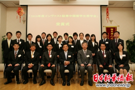 中新網5月18日電 據日本新華僑報網報道,5月15日,由日本英巴斯特證券株式會社發起的2010年度“中國留學生獎學金”頒獎儀式,在中國駐日本大使館教育處隆重舉行。中國駐日本大使館教育處公使銜參贊孫建明、日本英巴斯特證券株式會社代表取締役社長川路猛出席儀式并向獲獎中國留學生頒獎。協助本次獎學金制度的施和獲獎評選的《日本新華僑報》社社長吳曉樂、全日本中國留學生學友會的代表也出席了本次儀式。