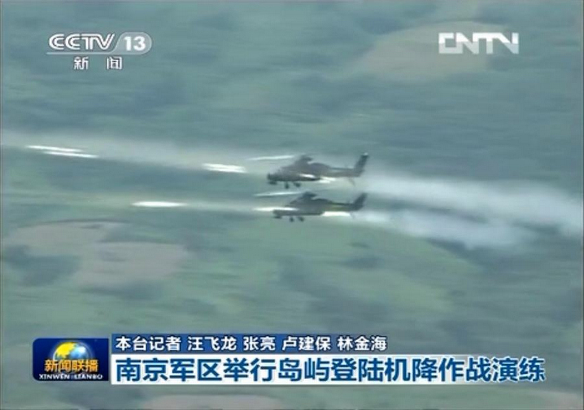 武直-10攻擊直升機發射火箭彈攻擊地面目標
