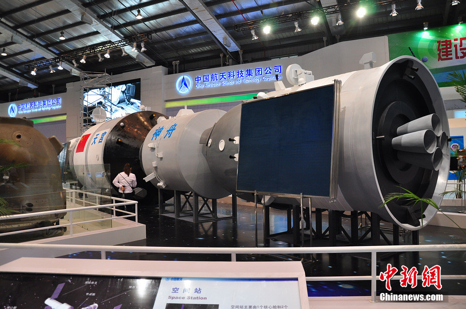 天宮一號空間站與神九飛船對接模型。陳海峰 攝