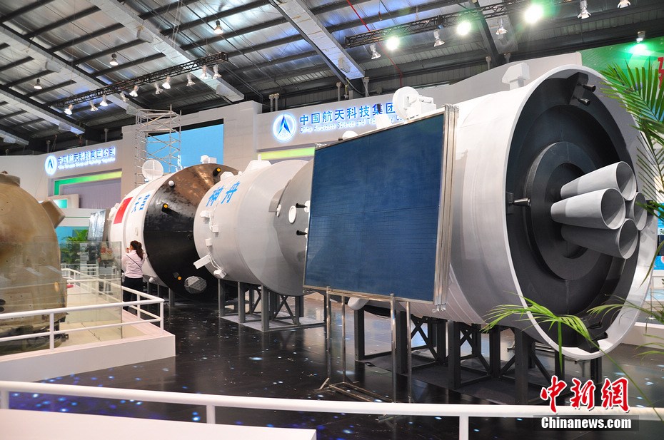 天宮一號空間站與神九飛船對接模型。陳海峰 攝