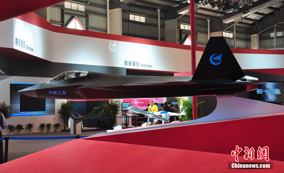 記者在珠海航展現(xiàn)場發(fā)現(xiàn),中國工業(yè)推出一款“先進(jìn)戰(zhàn)斗機(jī)概念”1:4模型,從外形上看,與前不久成功試飛的殲31相似。這也是國產(chǎn)四代機(jī)首次在珠海航展上亮相,標(biāo)志著珠海航展已進(jìn)入四代機(jī)時(shí)代。陳海峰 攝